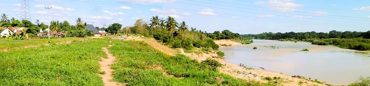 This tranquil scene of the Great Ruaha riverbank is threatened with erosion caused by increasing global warming. The soft sandy earth is being rapidly eroded by ever increasing frequency and intensity of rainstorms coming across from the Indian ocean. Here. the river is low, exposing sandy beds, deposits from the eroded riverbank which is encroaching less than 100 meters from to the local community. With more rainfall it becomes a torrent, speeding up the erosion and threatening to overflow onto productive land owned by smallholder subsistence farmers. In between the bank and the buildings is a narrow canal which carries water to a local sugar mill, the main employer and for which local farmers grow sugar cane. However, the greatest threat to the river is that it will lose power and flow as it converges with another downstream, suppling a hydroelectric dam and main source of renewable energy.